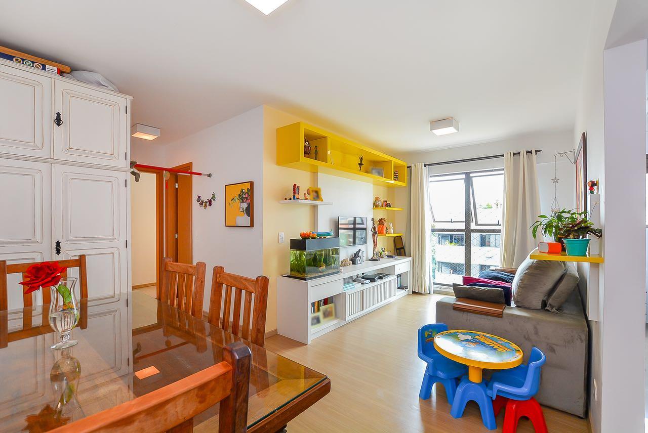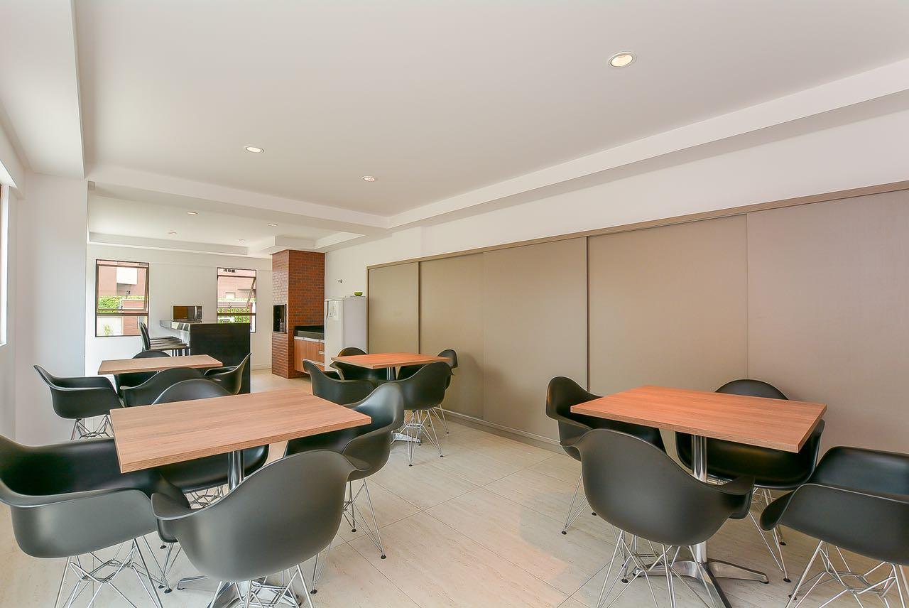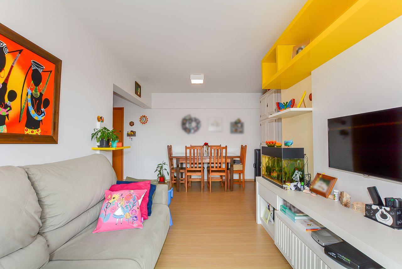 Ed. Paço Real - Champagnat. Ótima localização na Av. Júlia da Costa, próximo ao Supermercado Condor Champagnat e à R. Pe. Anchieta, que dispõe dos mais diversos tipos de comércio e serviços, além de transporte. Apartamento do sexto andar, semi-mobiliado, face oeste, composto por: sala com piso laminado, cozinha com armários e tampo, área de serviços com aquecedor à gás. Dois dormitórios (1 suíte) com armários. Bwc social. Uma vaga de garagem. Empreendimento com fina decoração e acabamento, oferece espaço gourmet completo com churrasqueira e fitness. Para maiores informações ou para agendar uma visita, ligue e fale com um de nossos consultores.** Imóvel locado, a mobília que aparece nas fotos não faz parte da venda, apenas mobília planejada da cozinha, bwc e armários fixos dos quartos. Consulte para detalhes.**Valores e condições poderão ser alterados sem aviso prévio.
