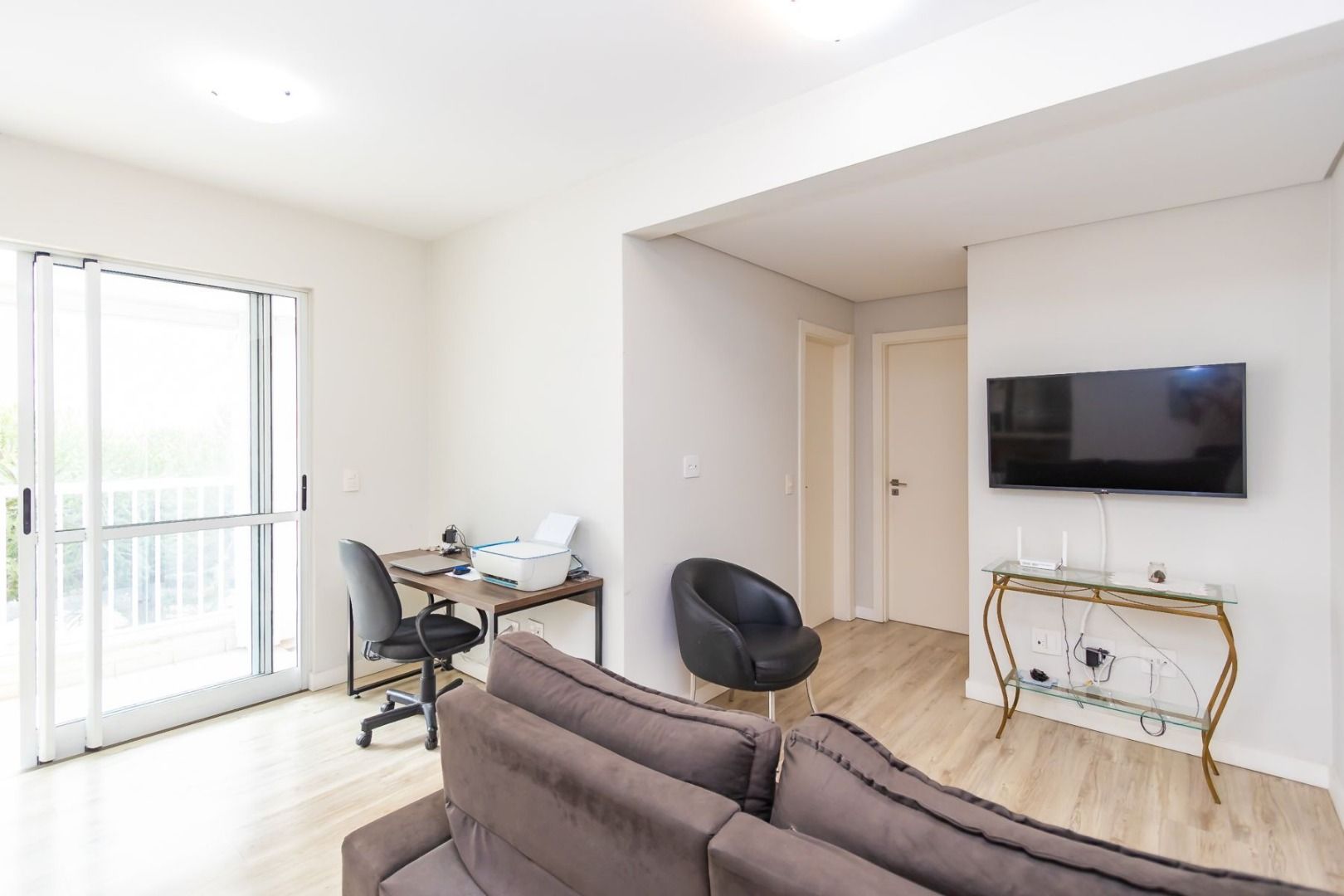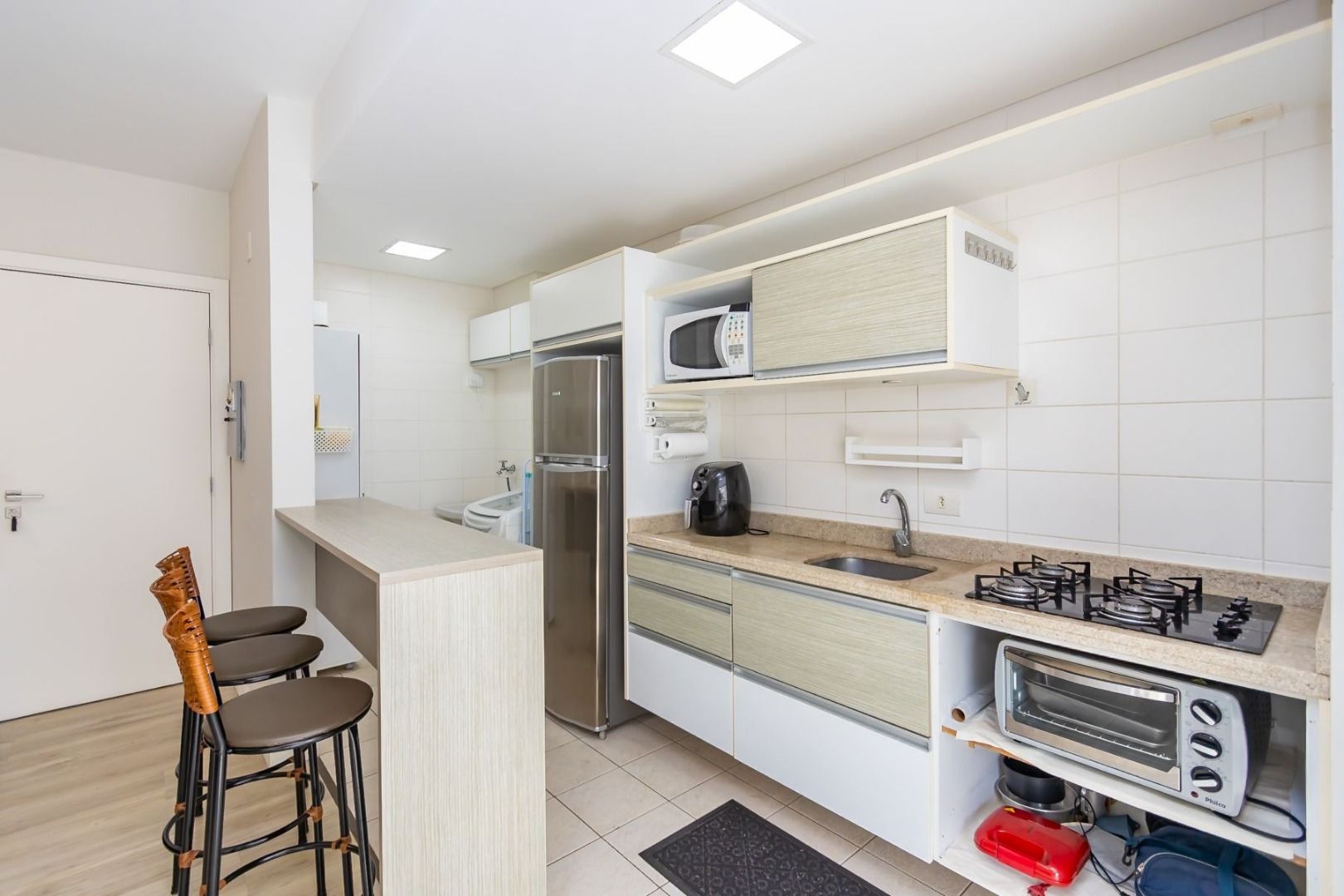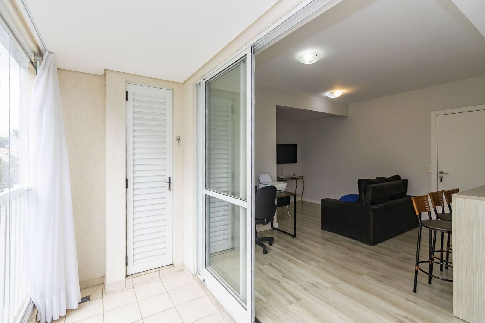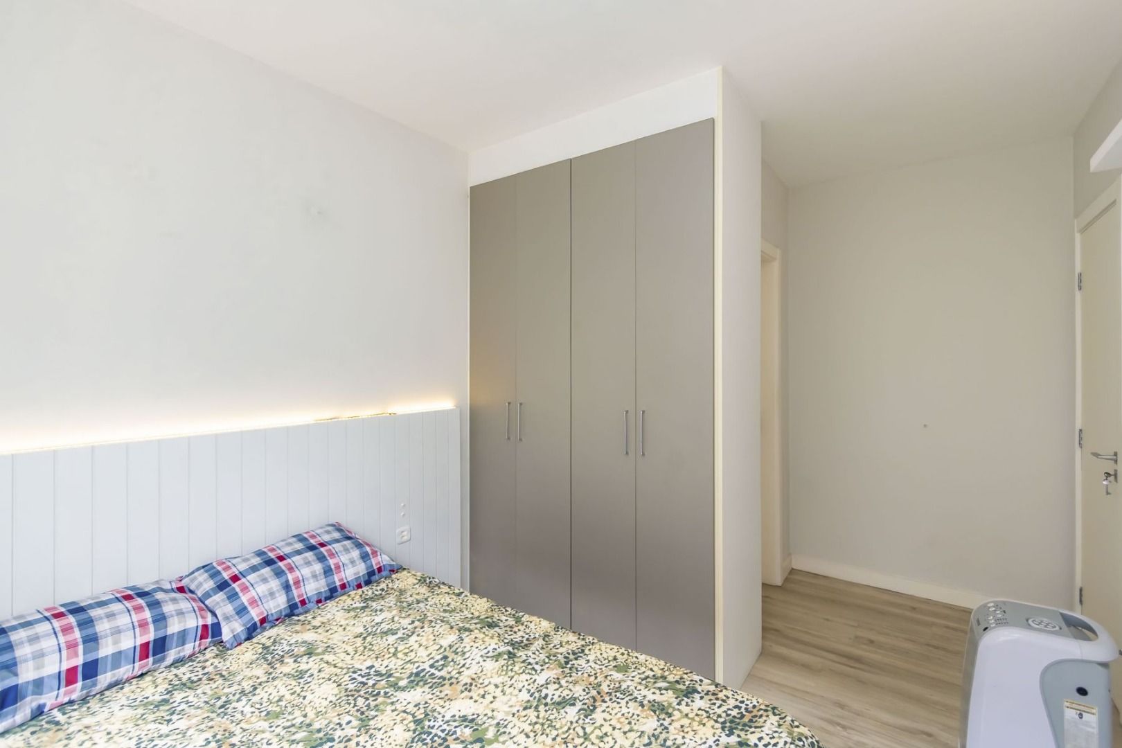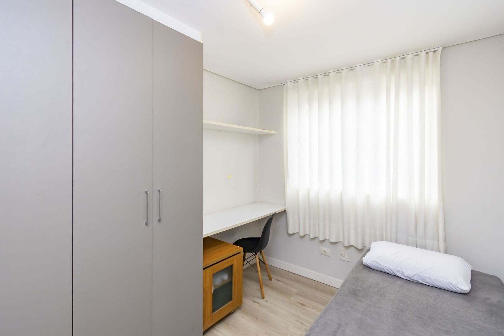 Apartamento semimobiliado no 5º andar, face oeste, com sala para dois ambientes, cozinha planejada equipada, sacada com churrasqueira, 2 quartos (1 suíte) com armários, banheiro social e 1 vaga de garagem individual.