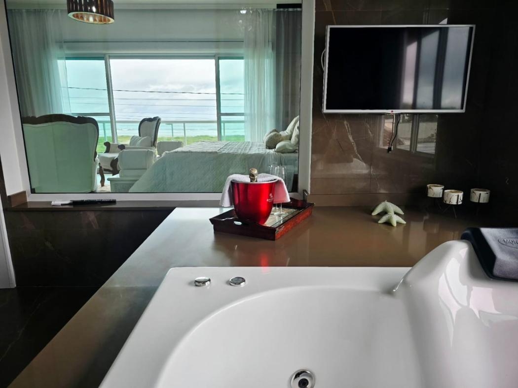 03 Suítes com sacada, 01 Suíte com hidromassagem e sacada com vista ampla do mar, Hall com escritório.