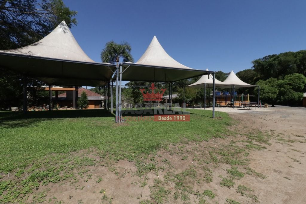 ÁREA EXTERNA 2 pergolados de madeira e iluminados, 1 lareira ao ar livre, 1 caixa d'água 6 mil litros, 1 barrão estruturado semi acabado com 200m², 1 playground coberto, 2 tanques de peixes, 1 poço artesiano com 120 mts de profundidade, 1 poço semi-artesiano com 8 mts de profundidade, iluminação subterrânea e refletores em LED, alimentação hidráulica subterrânea, 2 portões eletrônicos de correr e cercas frontais em madeira itauba. Laterais e fundos cercados com arrame.